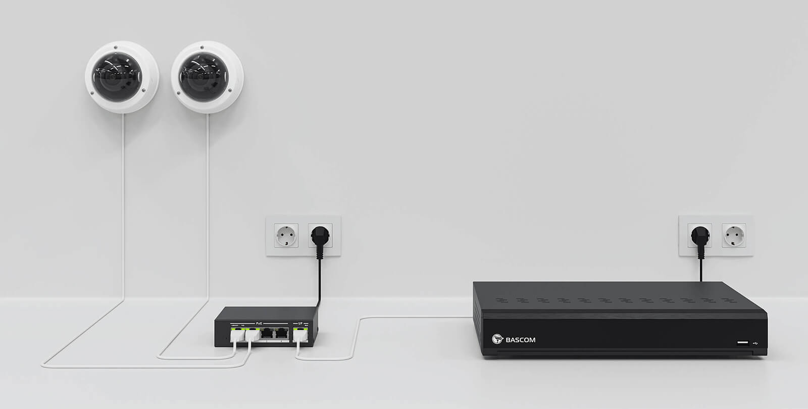 Dans un système de vidéosurveillance câblé, les caméras sont généralement reliées directement à l’enregistreur. Pour les installations plus vastes, l’utilisation d’un commutateur PoE (PoE switch) peut toutefois s’avérer plus efficace – notamment lorsque plusieurs caméras sont éloignées de l’enregistreur. Il suffit alors de connecter toutes ces caméras au switch, puis de tirer un seul câble vers l’enregistreur.