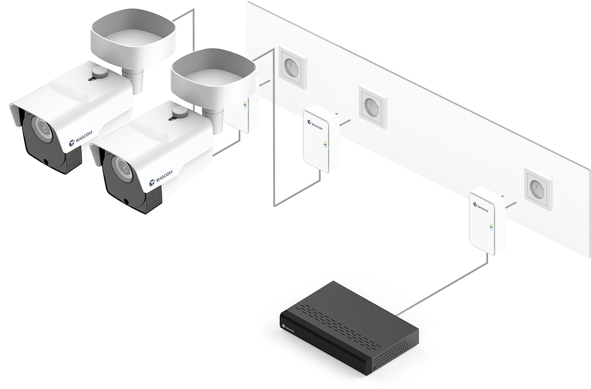 Ce système de vidéosurveillance est équipé de Bascom® POWER, notre technologie révolutionnaire qui transmet les images via le réseau électrique. Il vous suffit de brancher les caméras sur une prise de courant : elles se connectent automatiquement à l’enregistreur en utilisant vos câbles électriques existants. Vous bénéficiez ainsi de la fiabilité d’une connexion filaire, sans avoir à tirer de câbles vous-même.